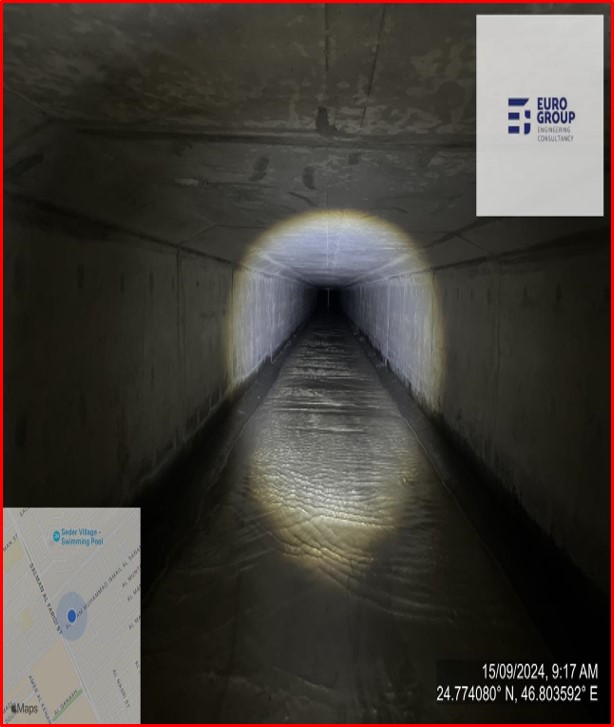 The project encompasses comprehensive general and technical supervision of maintenance activities for stormwater and groundwater drainage networks in the eastern sector of Riyadh. This includes the inspection, monitoring, and upkeep of various infrastructure components such as: