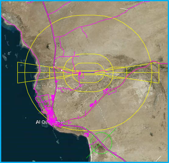 The project involves the design of 15 helipads at locations specified by the General Design Administration, with each helipad strategically integrated into or positioned adjacent to the roadway based on the most suitable alternative determined through comprehensive site-specific studies. The combined length of the helipads is approximately 6,220 meters. Each helipad is designed to include two bypass zones, two takeoff readiness zones (turning areas), and a dedicated parking area measuring 120×60 meters, capable of accommodating two aircraft. This design ensures functionality, efficiency, and adherence to aviation and safety standards, optimizing the helipads for operational readiness and accessibility.